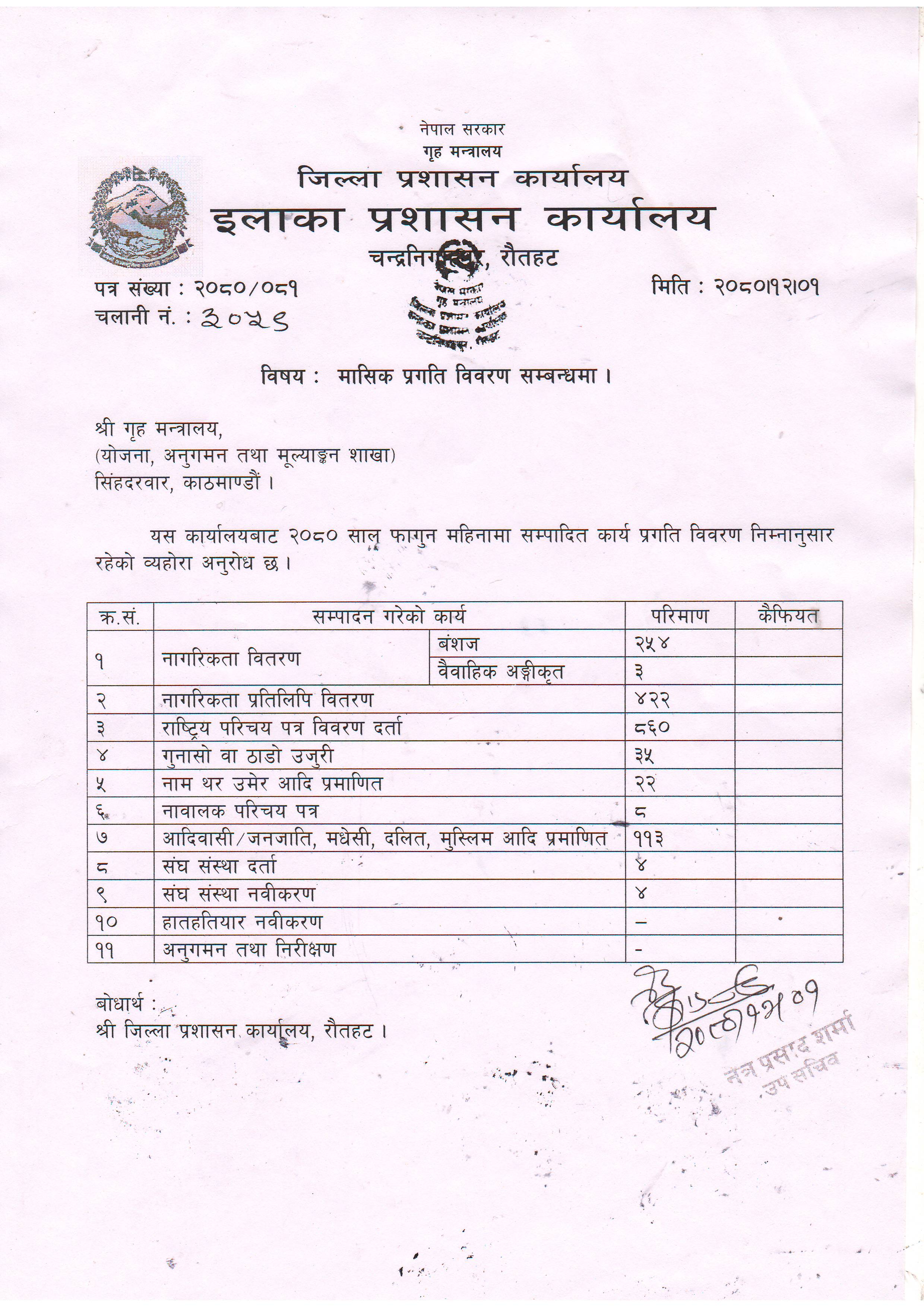 २०८१ साल चैत्र महिनाको मासिक प्रगति विवरण .