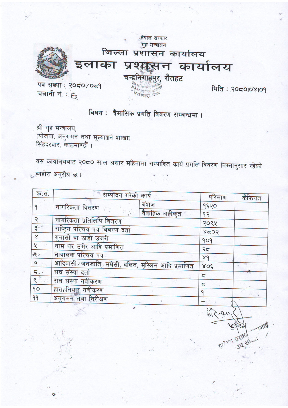 असार महिनाकाे त्रैमासिक प्रगति विवरण