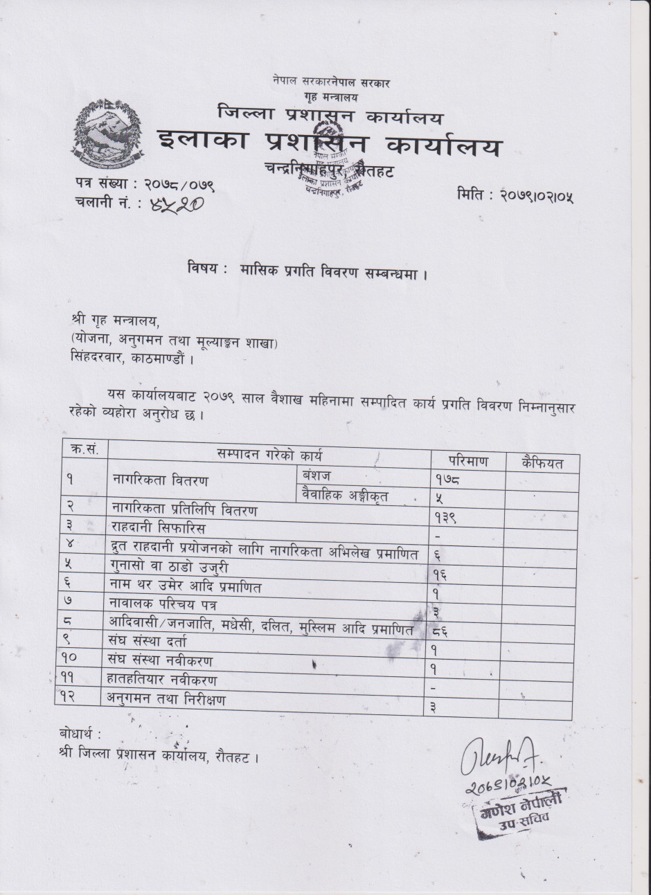 २०८१ साल चैत्र महिनाको मासिक प्रगति विवरण .