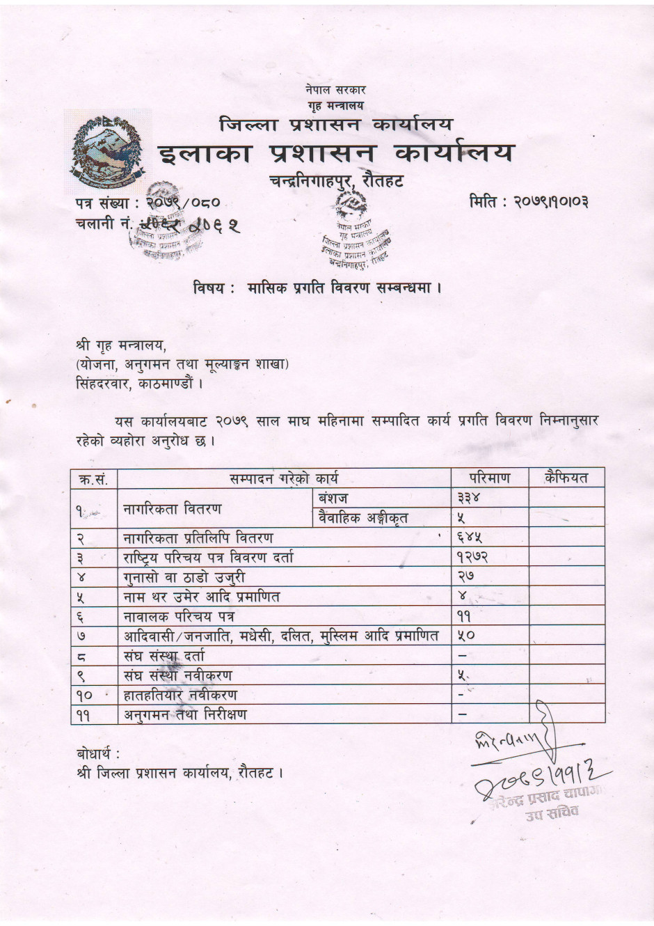 २०८१ साल चैत्र महिनाको मासिक प्रगति विवरण .
