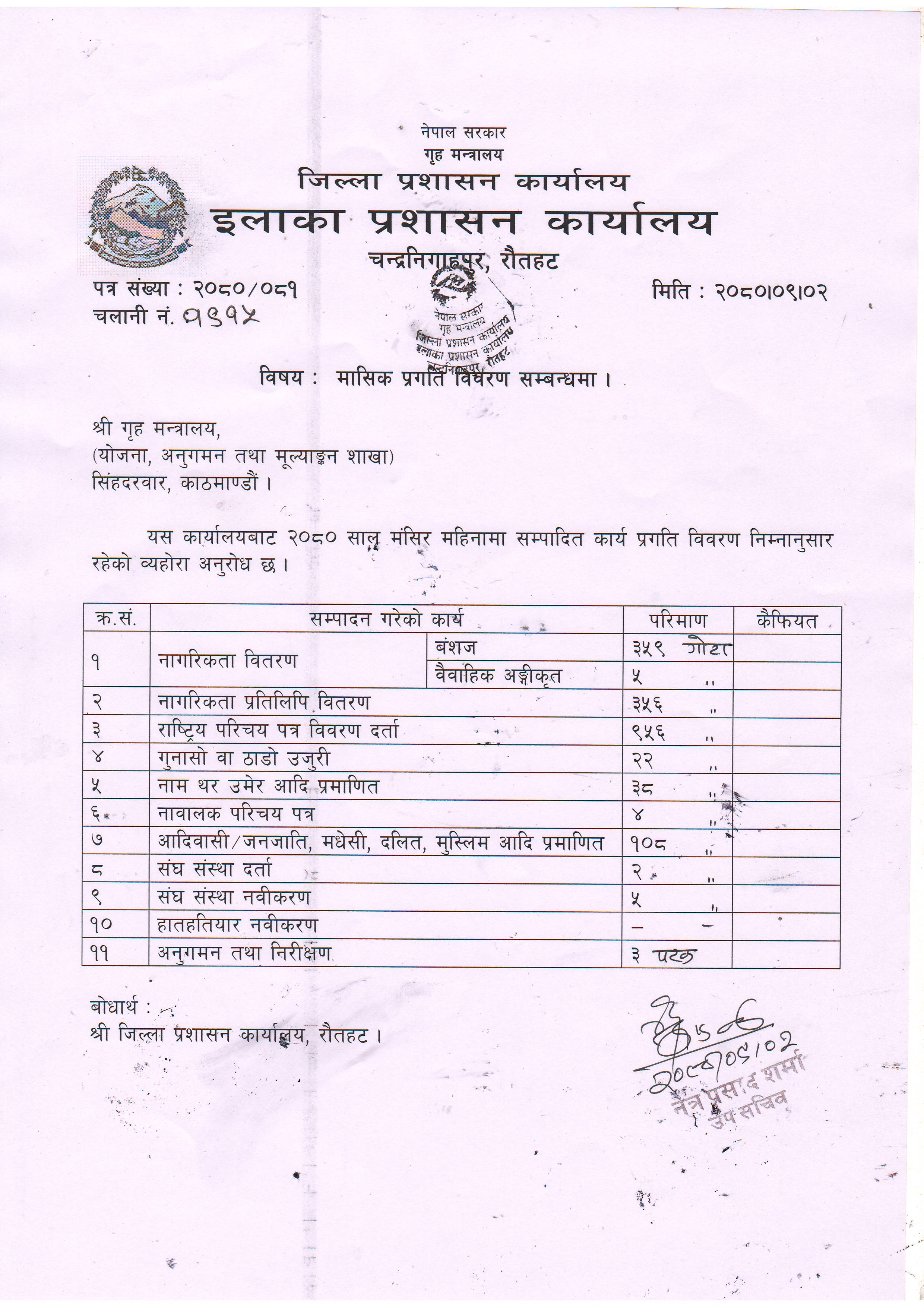 २०८१ साल चैत्र महिनाको मासिक प्रगति विवरण .