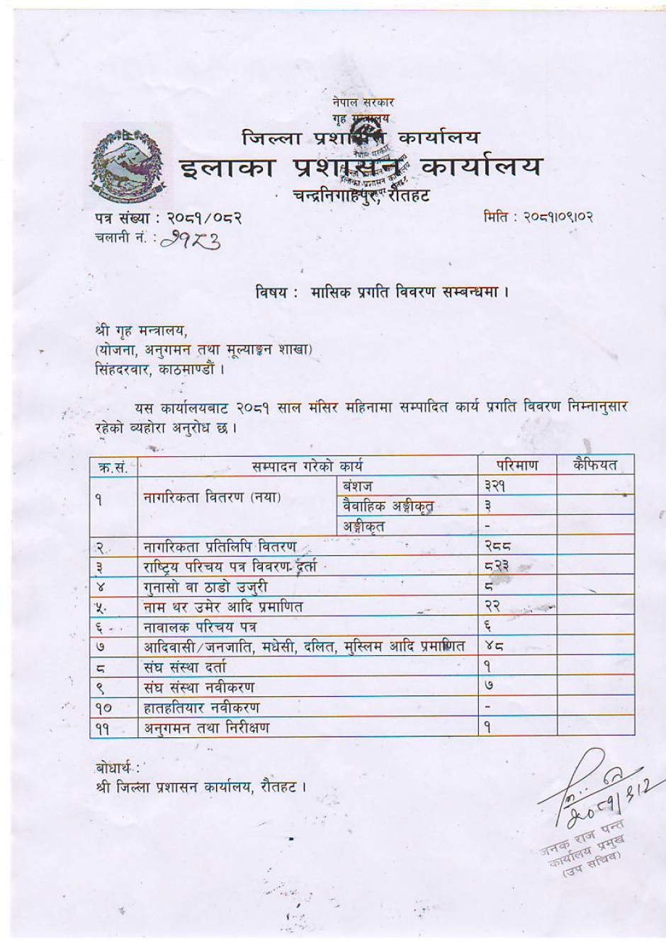 २०८१ साल मंसिर महिनाको मासिक प्रगति विवरण