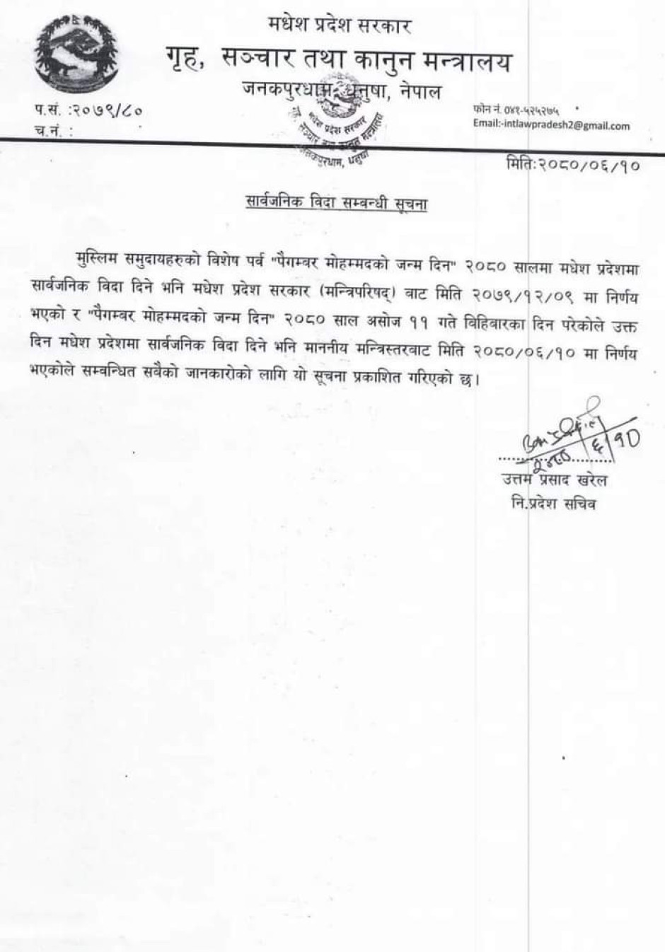 सम्बन्धित सबैको जानकारीको लगि ।